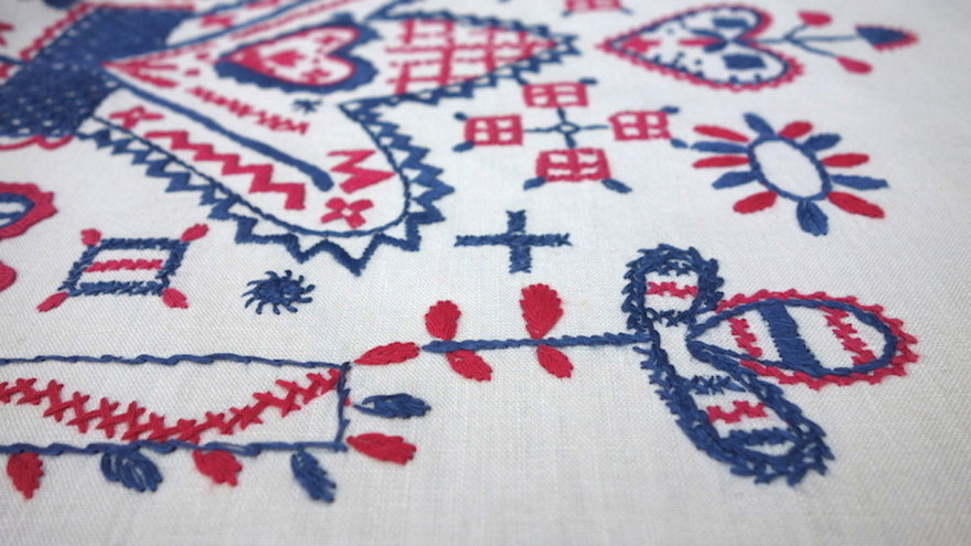 The pattern usually consists of circles, squares, heart-shaped figures and stem stitch loops. The patterns were drawn directly on the material and shapes were made with whatever means came to hand, such as plates, cups or coins.