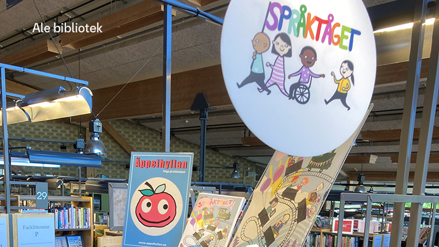 - Gör en Språktågethylla i biblioteket med böcker från boktipslistan. Märk upp böckerna med klistermärke på framsidan och/eller på ryggen, och lokalisera dem till hyllan i katalogen.