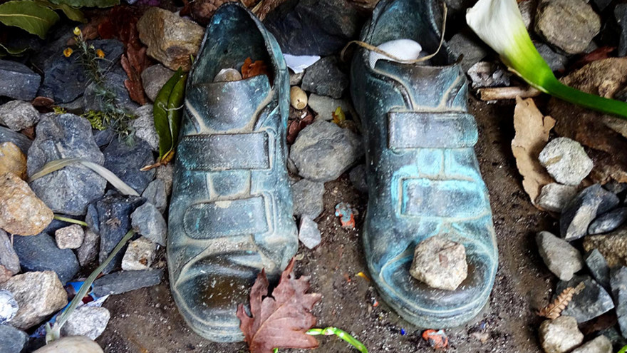 "Men vi traskade på uppför kullar och ner genom dalar. Ibland stannade vi och fyllde på med vatten, choklad, torkad frukt och mandlar som vi hade i ryggsäcken. Och kissade gjorde man bakom ett träd i skogen."