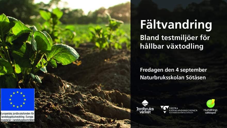 Välkommen på en fältvandring där vi visar och berättar om två testmiljöer inom mark och växtodling. På Naturbruksskolan Sötåsen i Töreboda görs i år försök med att odla grödor som vanligtvis inte odlas på våra breddgrader samt tester för att förbättra jordhälsan med hjälp av biokol och gröngödslingsväxter. Den 4 september visar vi upp båda testmiljöerna och berättar om hur vi arbetar med utveckling för framtidens växtodling. Välkommen att delta, inspireras och nätverka!