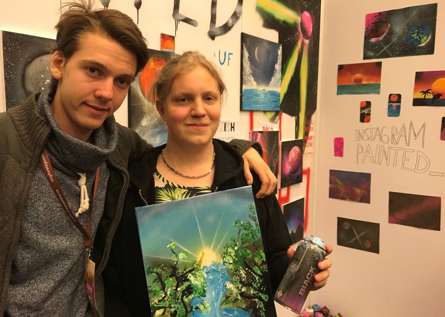Gustafsson och Alfons Arrhenborg, som gjort egna tavlor målade med sprayfärg.