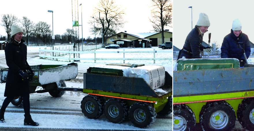 - Den har varit ett jättebra verktyg, speciellt i arbetet utomhus i hagarna. Tidigare har vi använt fyrhjuling med släp vid mockning av hagarna men en fyrhjuling är inte alls lika smidig att flytta runt vilket leder till att man får gå mer och bära mer, säger Charlotta Liedberg, yrkeslärare på Axevalla Hästcentrum.