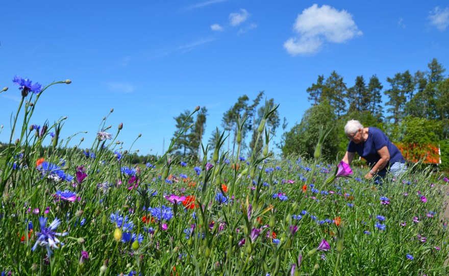 - Det enklaste att börja med är att så en blomsterremsa någonstans där det passar, vid en dikeskant till exempel. Honungsört är en bra sort att börja med, den är lättodlad och blommar ofta bra. Att spara en bit av vallen är också en ganska enkel åtgärd att ta till. Vallen finns ju redan ute på fältet och låter man den stå kvar så går den snart upp i blom, säger Britt-Marie.
