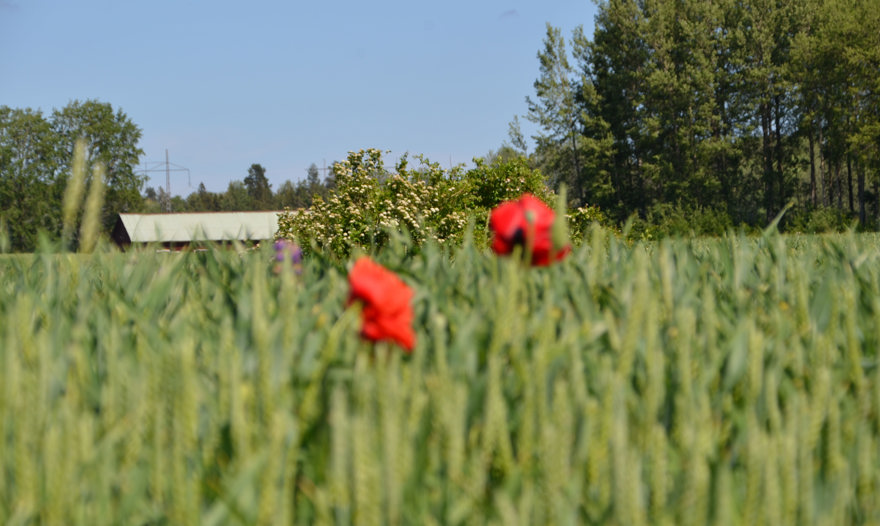 I kanten av fälten, i den stora frilandsodlingen och i dikeskanter är blomsterremsor insådda. I en av vallodlingarna växer inte bara gräs utan också blommor som kärringtand och svartkämpe. Mellan fälten och runt brunnar växer buskar och häckar. När det är dags att slå vallen lämnar man medvetet kvar delar av den på fältet. För en utomstående kan det se lite märkligt ut, men allting handlar om att skapa en miljö där insekter, djur och fåglar kan trivas.