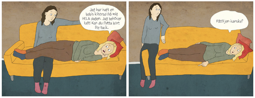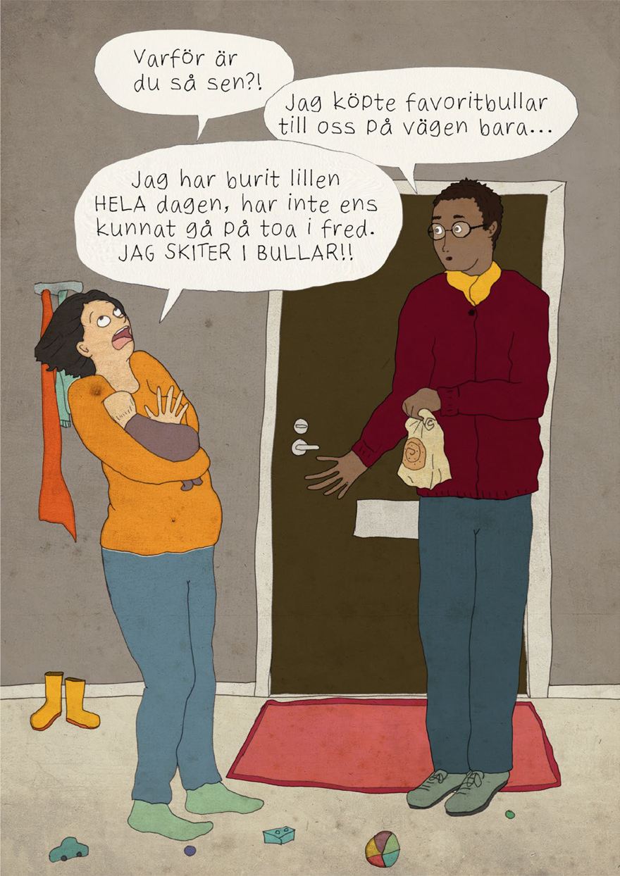 پس از تولد فرزند، احتمال ایجاد تغییرات شدید هورمونی در بدن مادر زیاد است. در مورد همسر نیز، عواطف ممکن است به شدت دچار نوسان شود. بسیاری از نو والدینها چند روز پس از تولد فرزند، دچار اندوه میشوند که به نوبه خود استرسزاست زیرا شما «باید» خوشحال باشید. به آن «گرفتگی خلق پس از زایمان» - یا به سوئدی، «گریه و زاری روز سوم» - گفته میشود و معمولاً طی چند هفته رفع میشود. اگر این اتفاق رخ نداد، به آن PND (افسردگی پس از زایمان) گفته میشود. در این صورت، مهم است که کمک دریافت کنید.