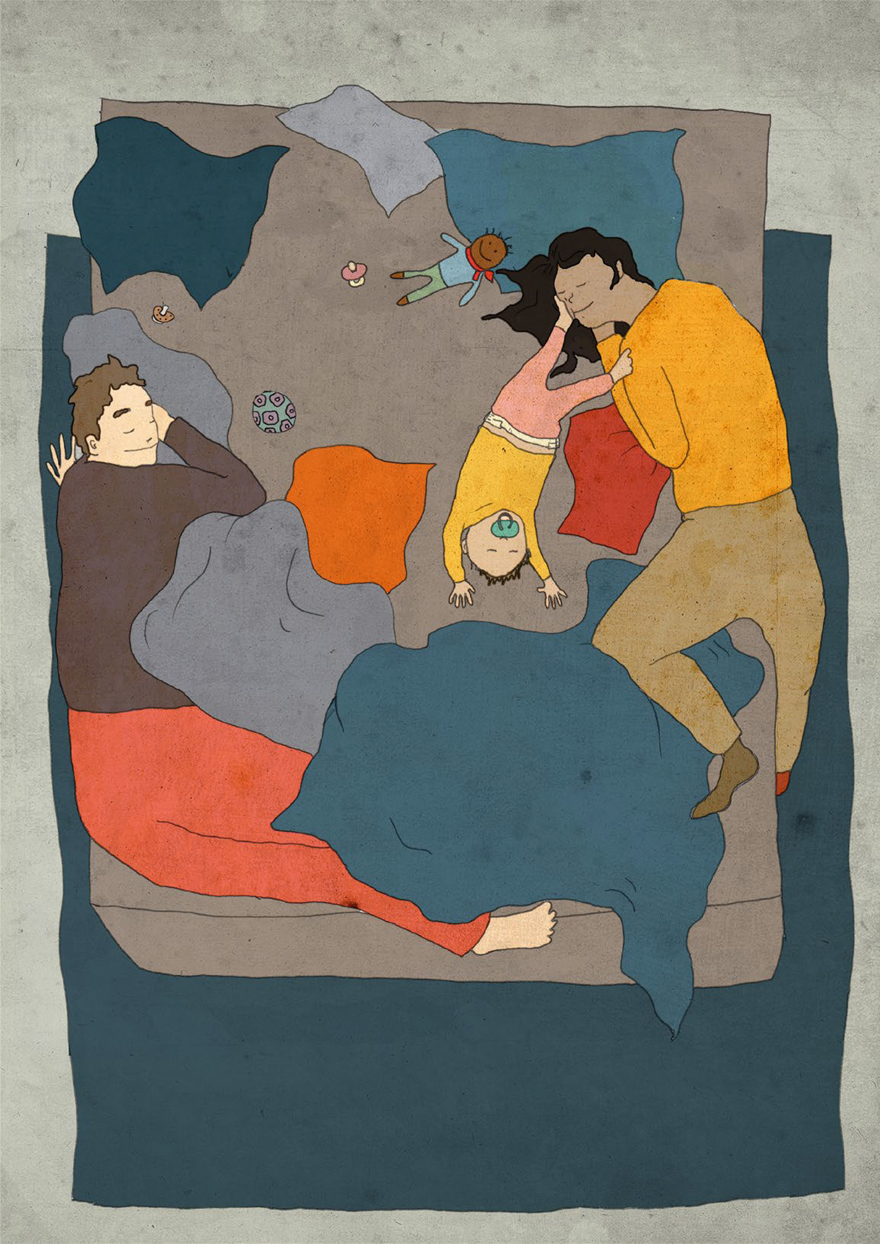خوابیدن با هم با کودک همیشه موضوع بحث بوده است. به گفته هیئت ملی سلامتی و تندرستی، برای کودکان زیر سه ماه بهتر است به پشت و در تختخواب خود بخوابند. این امر برای کاهش نرخ فوت ناگهانی نوزادان است. همه کودکان از خوابیدن در تختخواب خود رضایت ندارند. اگر قرار است کودک در تخت شما بخوابد، فکر خوبی است که او را در قسمت بالای تخت و جای مخصوص کودک بگذارید. این کار پوشش اتفاقی صورت کودک را کاهش میدهد. همچنین مهم است که کودک بیش از حد داغ نشود. پیجامه و ملحفه نازک معمولاً کافی است.