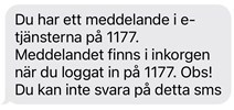 Om mottagaren har angivit ett mobilnummer så får hen ett sms med texten: "Du har ett meddelande i e-tjänsterna på 1177. Meddelandet finns i inkorgen när du loggat in på 1177. Obs! Du kan inte svara på detta sms".