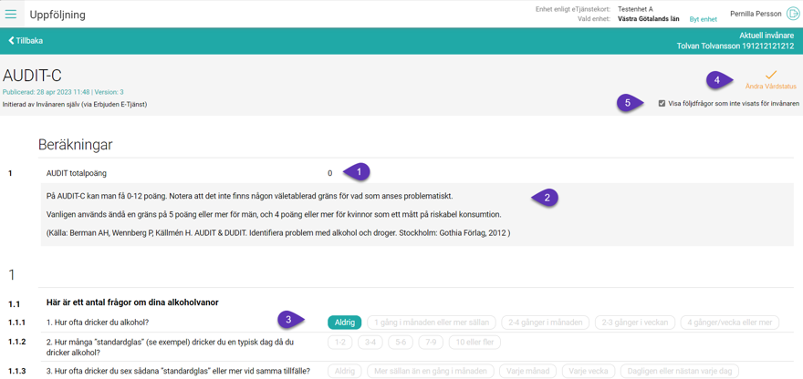 - Uppe till höger går det även att visa/dölja obesvarade frågor med kryssrutan "Visa följdfrågor som inte visats för invånaren".