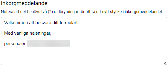 Om det behövs ett skräddarsytt inkorgsmeddelande för ett formulär så kan detta göras med Paketutskick (regionala förvaltningen kan hjälpa till att konfigurera detta).