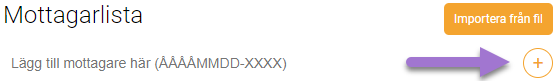 - Lägg till mottagarens personnummer i mottagarlistan (ÅÅÅÅMMDDXXXX eller ÅÅÅÅMMDD-XXXX).