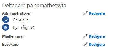 Medlemmar och Ägare kan läggas till eller tas bort antingen från Teams eller på samarbetsytan.