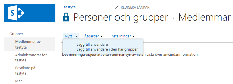 OBS! När en samarbetsyta teamifieras försvinner webbdelen Deltagare på samarbetsytans startsida!