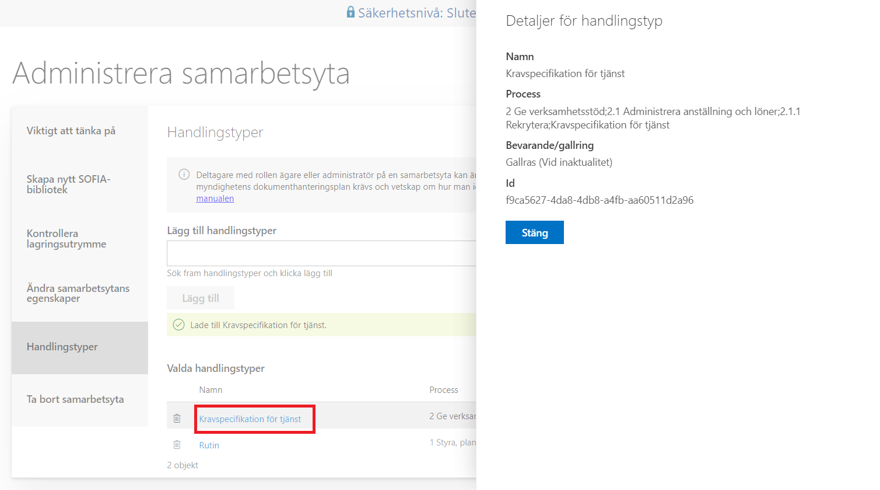 Deltagare med rollen ägare eller administratör på en samarbetsyta kan ändra favoritlistan. Observera att mycket god kännedom om myndighetens informationshanteringsplan krävs och vetskap om hur man identifierar handlingstyper i informationshanteringsplanen. Om du är osäker kontakta din myndighets arkivansvariga.