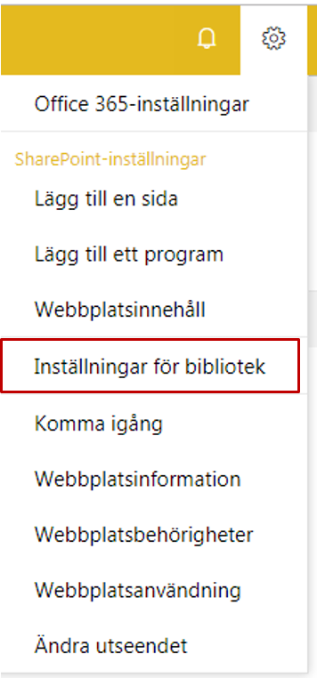 - Klicka på Kugghjulet och välj Inställningar för bibliotek.