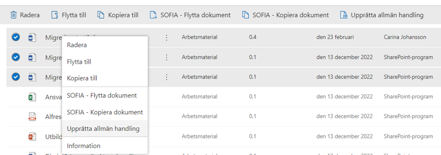 Eller högerklicka på dokumenten och välj "Upprätta allmän handling"