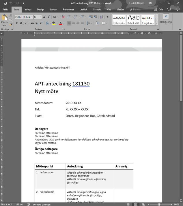 - Dokumentet öppnas nu för redigering i Office-klienten.