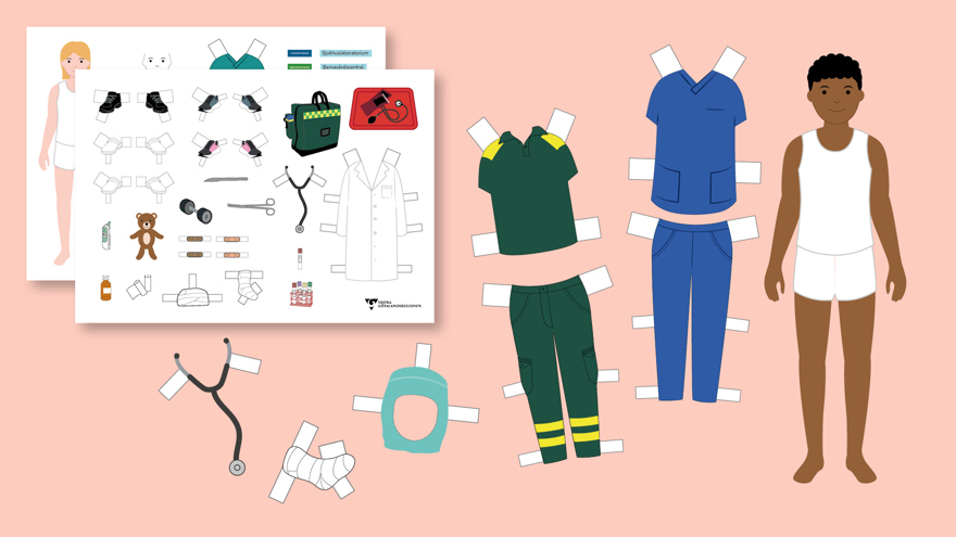 Låt barnen på förskolan eller skolan leka med VGR:s klippdockor och lära sig om yrken inom sjukvården.