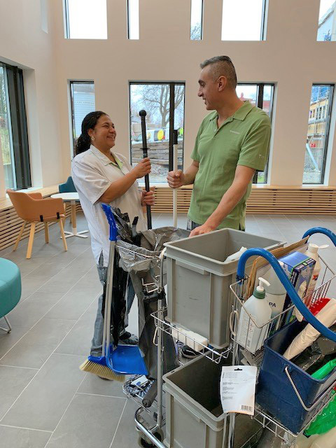 Att arbeta som lokalvårdare på Alingsås lasarett är ett variationsrikt arbete. Nabil arbetar enligt ett schema som innebär att han byter avdelning och arbetsuppgifter varje dag, något Nabil uppskattar.
