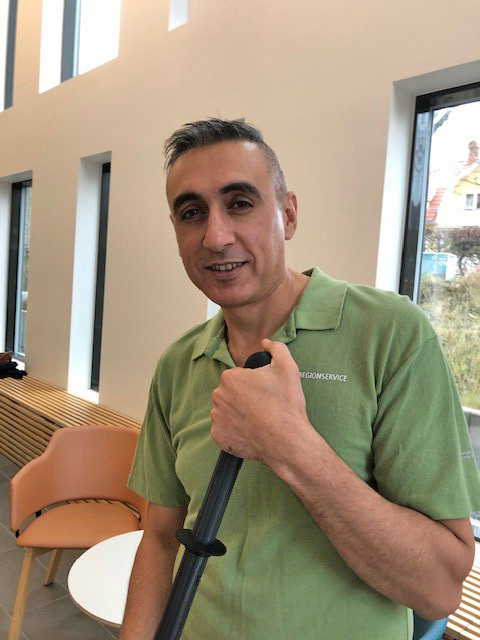 En av våra medarbetare heter Nabil Abdelsatar. Nabil är 41 år och arbetar som lokalvårdare på Alingsås lasarett och tillhör Regionservice. Varje dag städar Nabil och hans kollegor operationssalarna efter operationer, tar hand om farligt avfall, städar besökstoaletterna och hjälper patienter att transportera sig genom korridorerna.