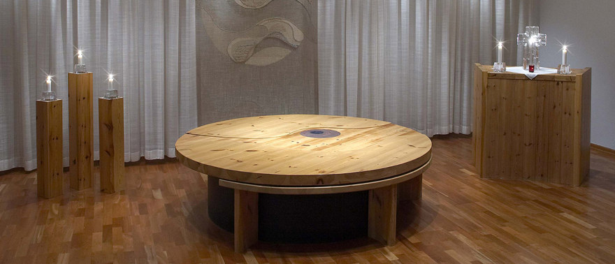 Gerd och Henrik Allert utformade rummet 1972. Deras tanke om utformningen var: