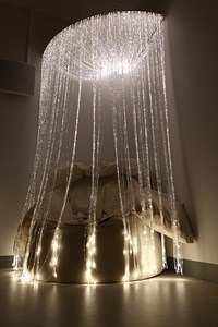 - en musiksäng där man känner vibrationer från musiken. En mjuk skinnmöbel med fiberoptik hängande som skön inramning från taket.