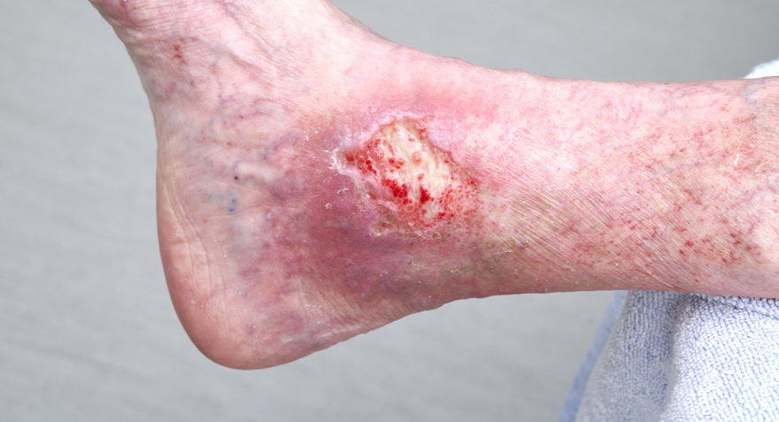 Sår betingade av småkärlssjukdom. Typiskt är vitaktiga ärrliknande hudområden (ofta kring anklarna) med högröda papler beroende på dilaterade småkärl. Mycket smärtsamt och svårläkt.